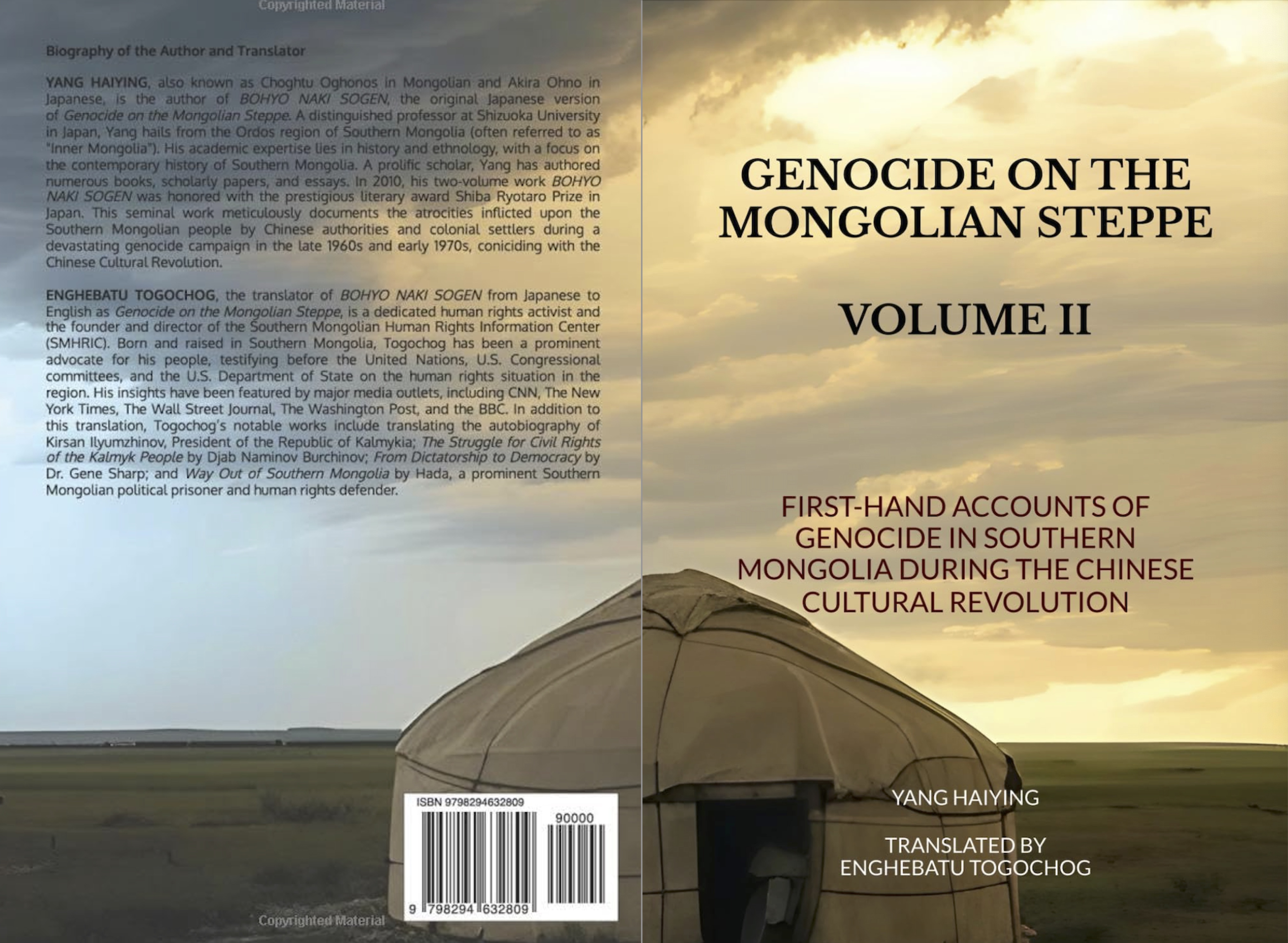 ... Commemorating the 100th Anniversary of the Founding of the Inner Mongolian People’s Party, the Southern Mongolian Human Rights Information Center (SMHRIC) announces the release of Genocide on the Mongolian Steppe: First-hand Accounts of Genocide in Southern Mongolia during the Chinese Cultural Revolution (Volume II), translated from Japanese into English by SMHRIC Director Enghebatu Togochog. “This year, 2025, marks the 100th anniversary of the founding of the Southern [Inner] Mongolian People’s Party, established in 1925 as the preeminent political organization in Southern Mongolian history,” Togochog stated in the “Translator’s Acknowledgement” of the book. Both Enghebatu Togochog and Professor Yang Haiying, author of the original Japanese volume BOHYO NAKI SOGEN, assert that the genocide of the Mongolian people during China’s Cultural Revolution was a crime against humanity that has remained largely hidden from the historical record. “This book is not only a historical recounting but also a solemn dedication to the hundreds of thousands of Southern Mongolians who lost their lives in the genocide campaign executed by the government of China and Chinese colonial settlers in  ....