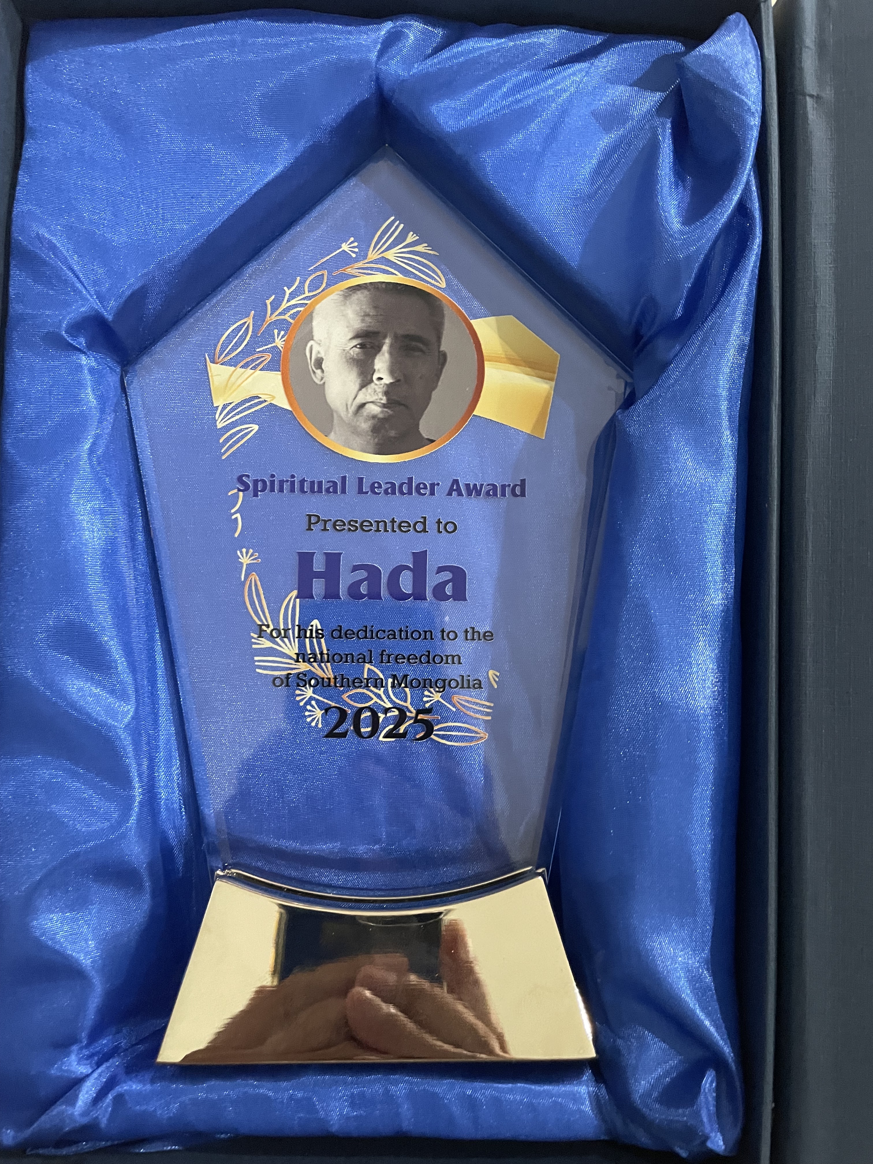 "Spiritual Leader of Southern Mongolia" Award for Hada